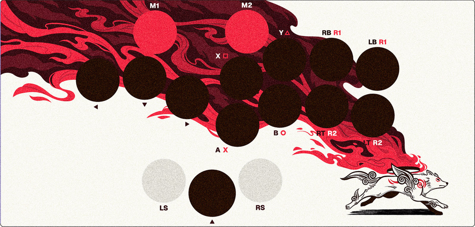 This passion project was born from a deep reverence for the fighting game genre and the timeless artistry of Ōkami (2006). Designed for my first leverless controller, the Haute42 C16, this artwork seeks to capture the same sense of wonder the game sparked in my childhood.