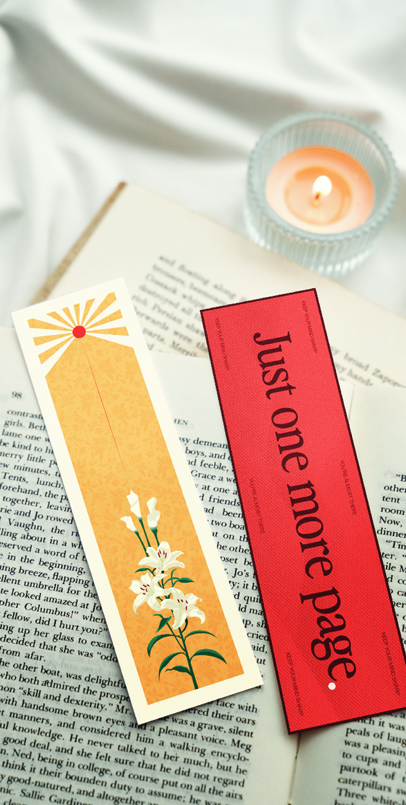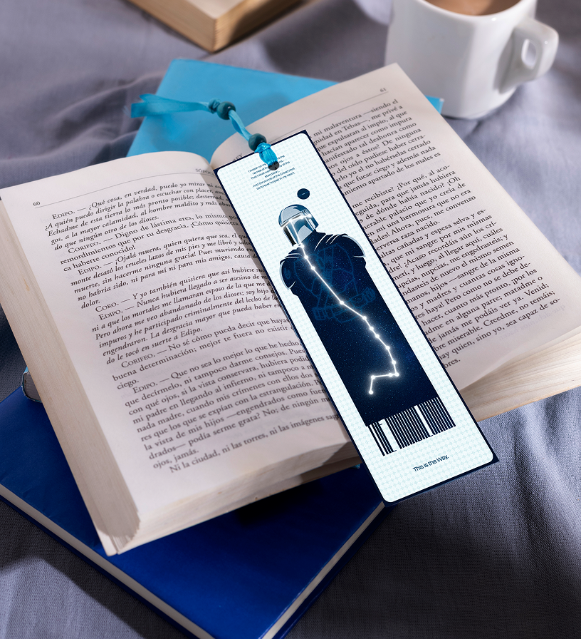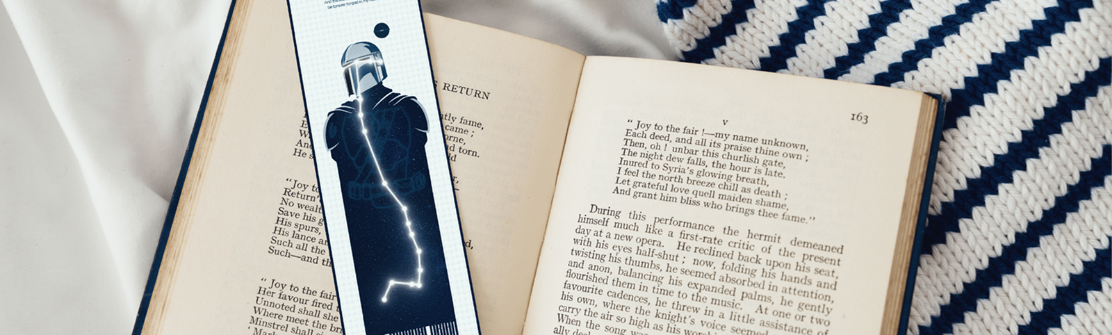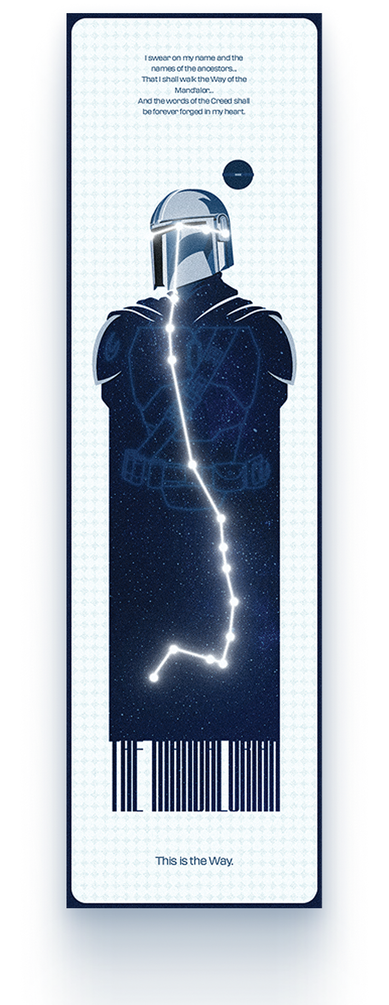 While the sun and garden provided literal inspiration, I leaned into conceptual associations for the final piece. The blue bookmark draws from The Mandalorian, bridging the vastness of the night sky with the stoic, professional energy of the character. By pairing these primary themes with clean typography and subtle textures, I aimed to prove that even a minimalist, restricted palette can convey distinct identities in a beautiful way.